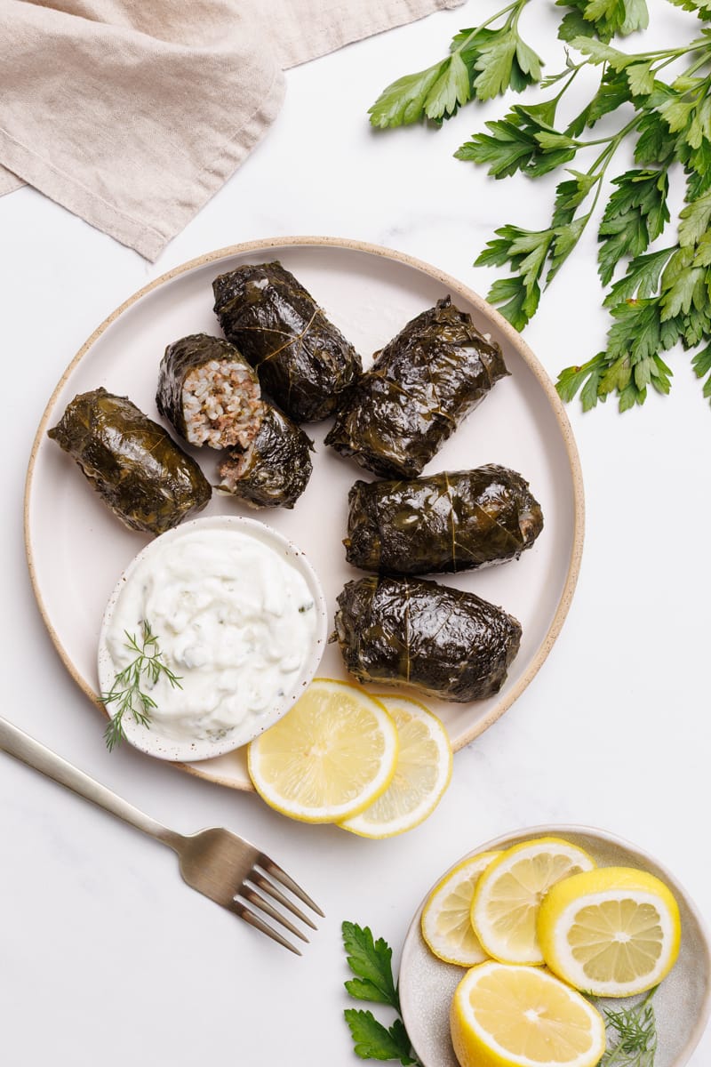 Tender grape leaves filled with a savory, herby rice and meat mixture, slowly cooked until soft and flavorful. This is a dish meant to be shared, made with patience, and eaten with your hands, just like we always did growing up.
